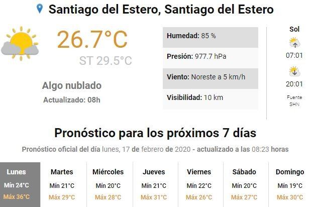 Llegó el lunes y el día comenzó en Santiago del Estero con un intenso calor desde las primeras horas del día. Será una jornada agobiante y donde podría haber lluvias durante la noche.
