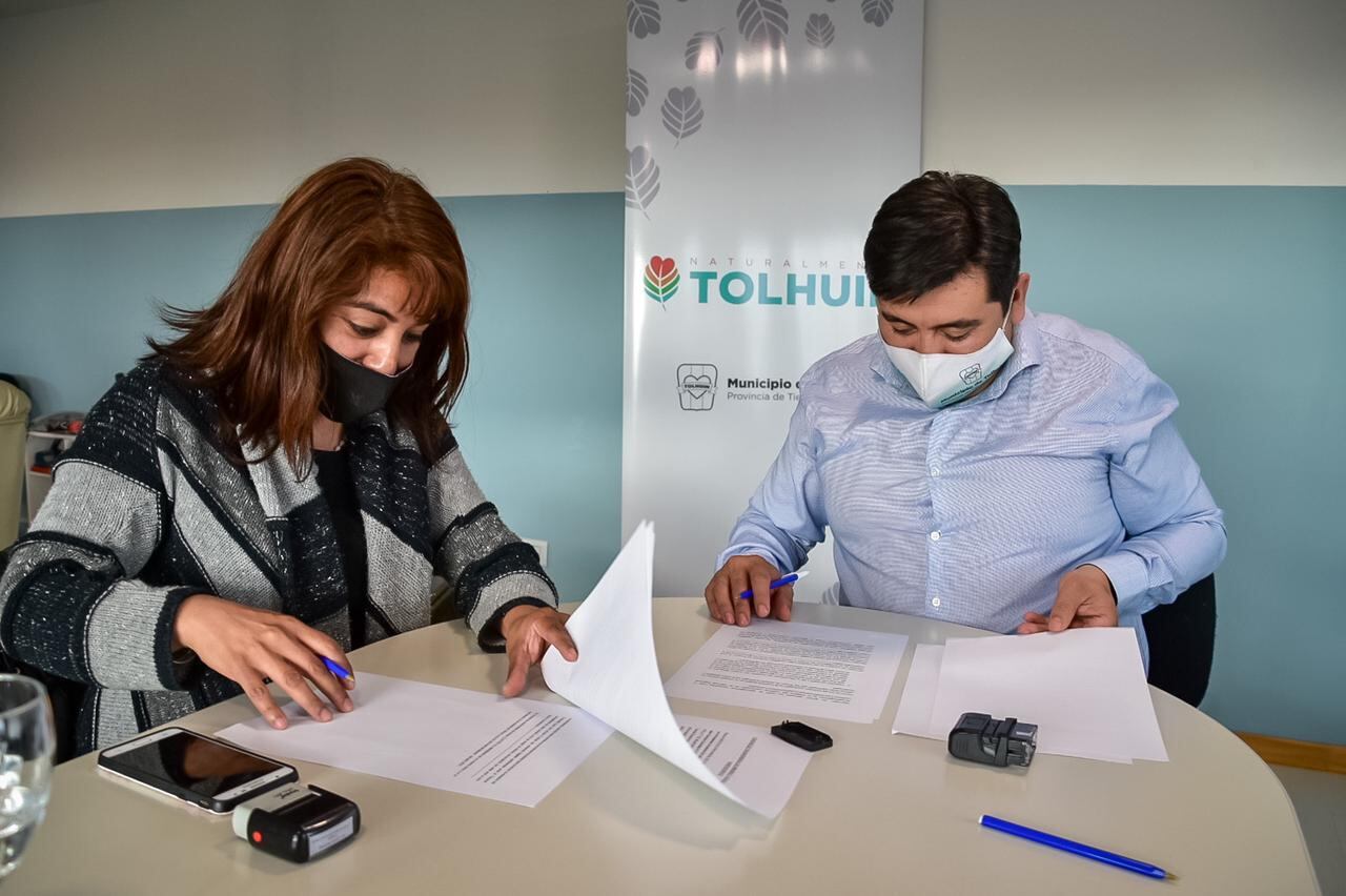 El Intendente Daniel Harrington y la Presidenta del IPVyH, Arq. Leticia Hernández, firmaron un Convenio en pos de colaborar con un amplio sector de la comunidad de tolhuin que aún no cuenta con vivienda única familiar.