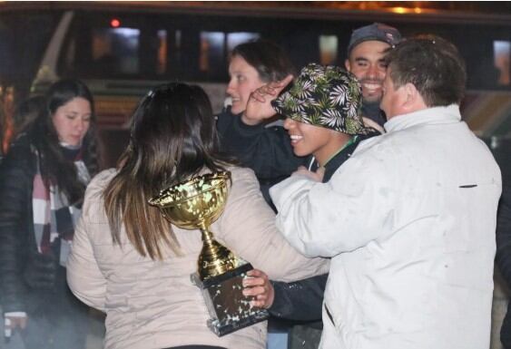 Nuestros jóvenes representantes fueron recibidos, en la Plaza San Martín por el intendente Carlos Sanchez, luego de que una caravana, encabezada por una autobomba de Bomberos Voluntarios, los recibiera en la rotonda de avenida Belgrano y la ruta 228.