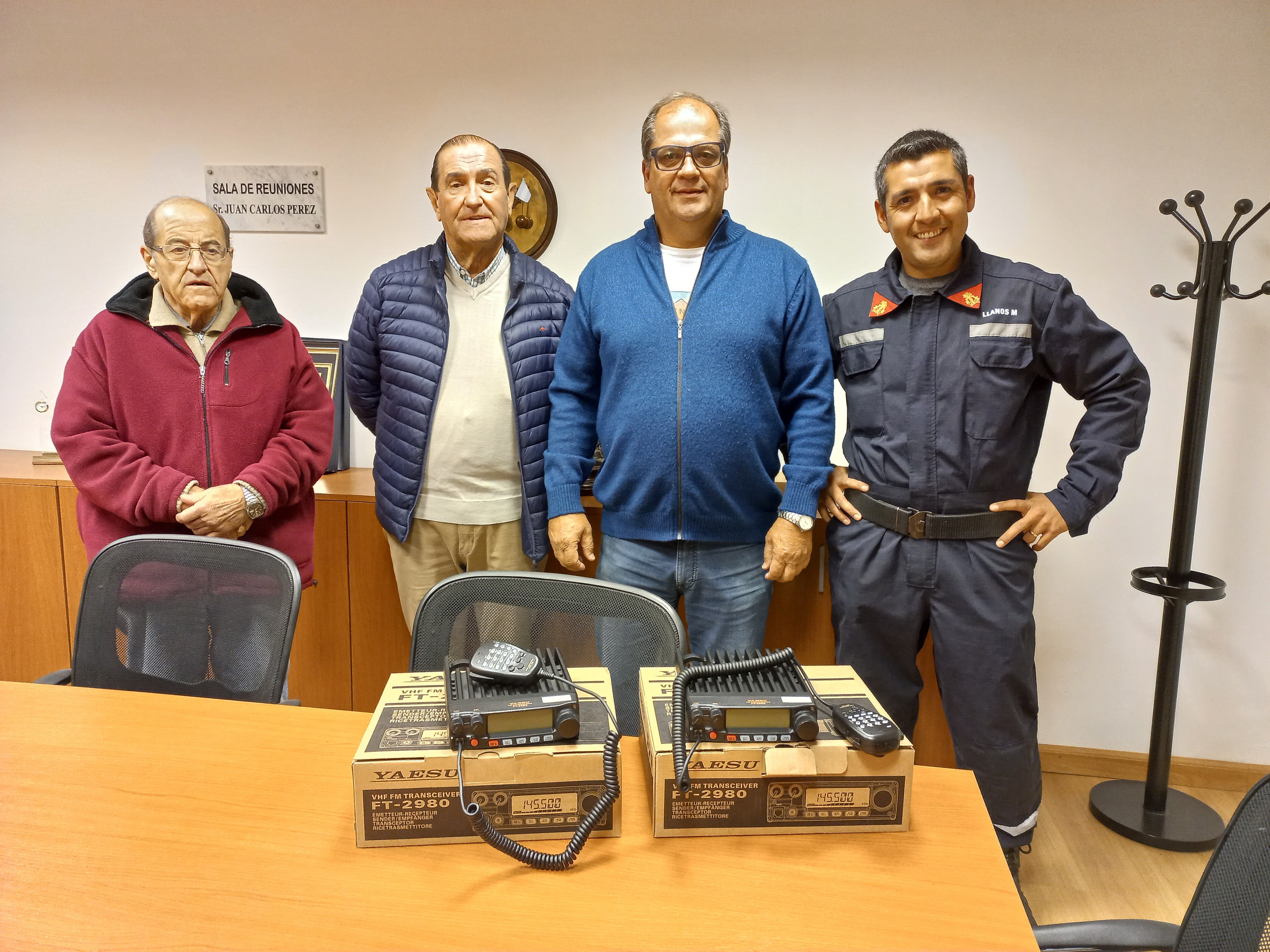 Dirigentes del Club Cazadores Tres Arroyos se hicieron presentes en la sede de Bomberos Voluntarios para hacer entrega a la institución de dos radios base marca Yaesu.