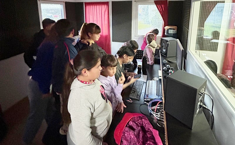 Para celebrarlo, grabaron su propia canción en el estudio del Centro Cultural, más de 70 niños que disfrutaron de momentos de alegría, con la grabación de una creación colectiva que late con la voz del barrio: