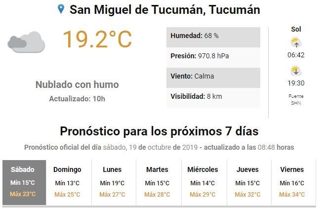 Desde el Servicio Meteorológico Nacional anunciaron para hoy una mínima de 13 grados, la máxima alcanzaría los 23 en horas de la tarde y la humedad es del 68%. No hay probabilidad de lluvias.