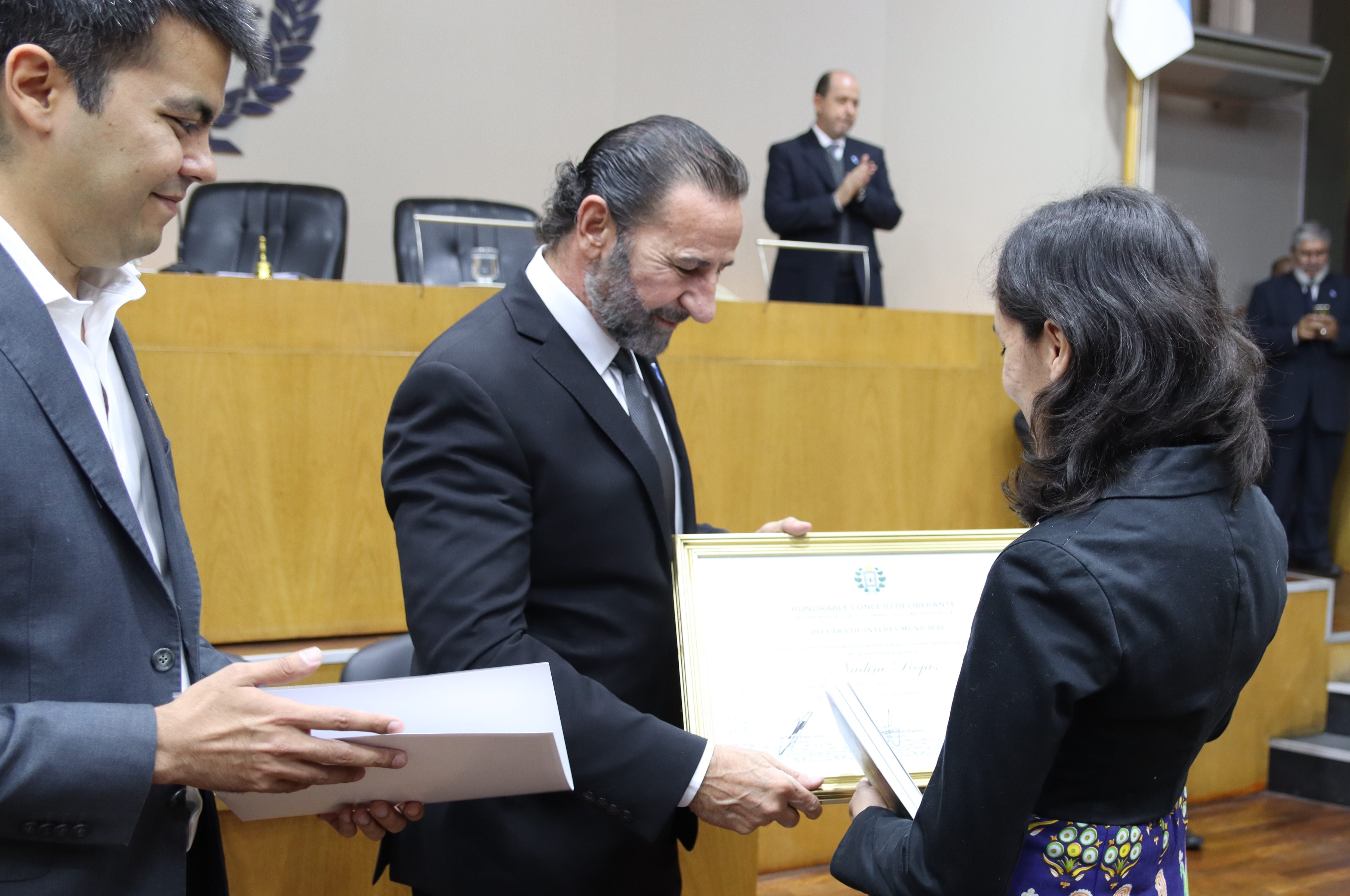La entrega la realizó el presidente del Concejo Deliberante, doctor Fernando Arturo Juri, acompañado del concejal Leandro Argañaraz.