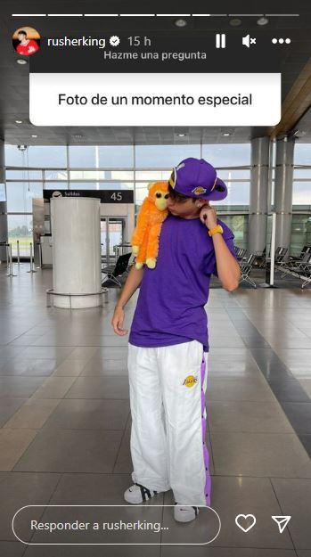 Mediante stories de Instagram, Rusherking respondió varias preguntas de sus seguidores, incluso subió una foto suya de un momento especial, donde se lo ve, aparentemente, en un aeropuerto con unos pantalones color blanco y remera violeta.
