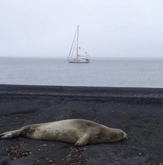 Una vez en territorio antártico, el velero ingresó en el Mar de la Flota y ancló frente a la Isla Decepción, como primer destino de un periplo que incluye numerosas bases antárticas argentinas y extranjeras, entre ellas la Base Esperanza donde funciona la escuela argentina Presidente Raúl Alfonsín, considerada la más austral del país.