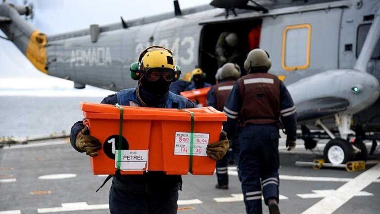 El abastecimiento realizado se basó en el transporte y entrega de víveres, carga frigorizada, equipamiento de trabajo diario, generadores eléctricos, tambores de aceite, combustible para aeronaves y gasoil antártico, entre otros elementos.