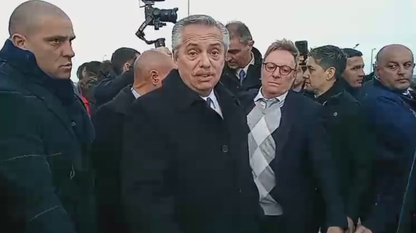 Alrededor del personal de la Armada Argentina, que estaba formada para rendir homenaje a sus camaradas que lucharon en Malvinas, había un grupo de ciudadanos que se manifestaron y pidieron hablar con el presidente para hacerle llegar, de primera mano, sus reclamos e inquietudes. Lo que más se destacó fue el acceso a la vivienda y la normalización en los puestos de trabajo.