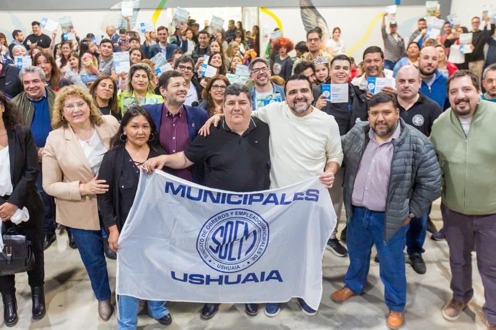 En un acto encabezado por el intendente Walter Vuoto, junto a la diputada nacional Carolina Yutrovic y al secretario de Hábitat y Ordenamiento Territorial David Ferreyra, la Municipalidad de Ushuaia entregó este lunes 49 decretos de preadjudicación a familias de Ushuaia nucleadas en los sindicatos UTA, Luz y Fuerza, UTEDYC, SOEM y AMET.