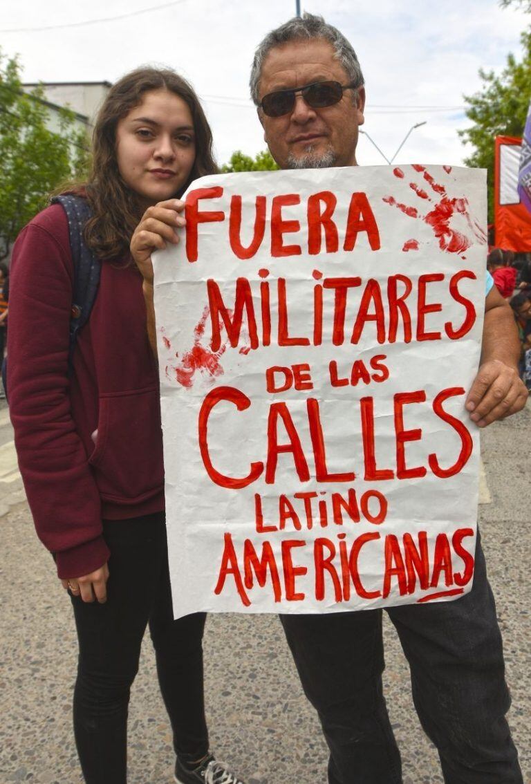 Realizaron este jueves en General Roca una marcha en repudio contra la situación que está viviendo Chile. Los neuquinos visibilizaron diferentes carteles contra los militares del país trasandino y su presidente, Sebastián Piñera.