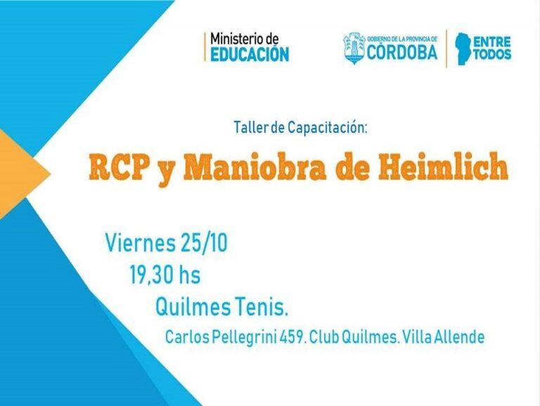 El viernes 25 de octubre a las 19.30 se realizará un Curso de Capacitación en Reanimación Cardiopulmonar RCP y Maniobra de Heimlich gratuito en Villa Allende.